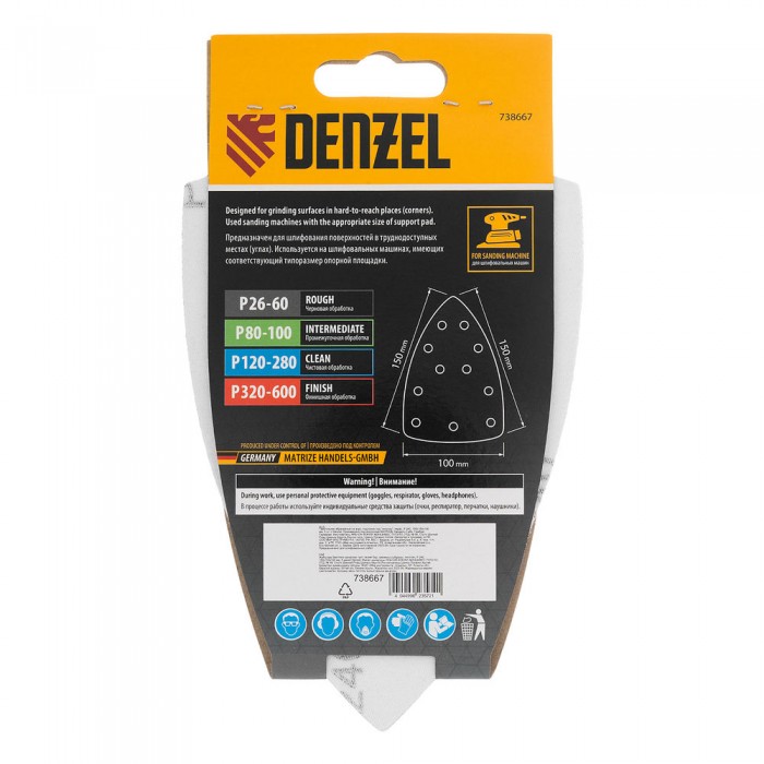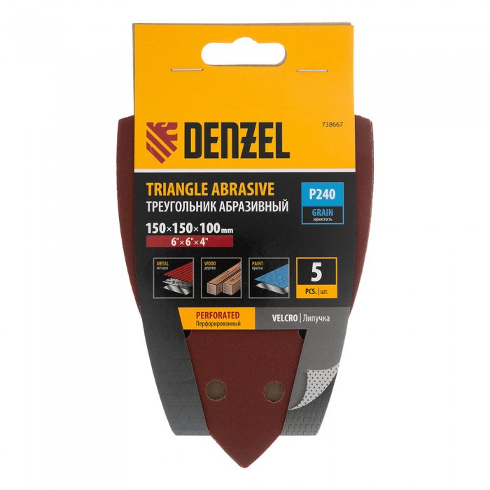 Треугольник абразивный на ворc. подложке под "липучку", перф., P 240, 150х150х100 мм, 5 шт. Denzel (738667)