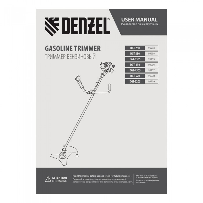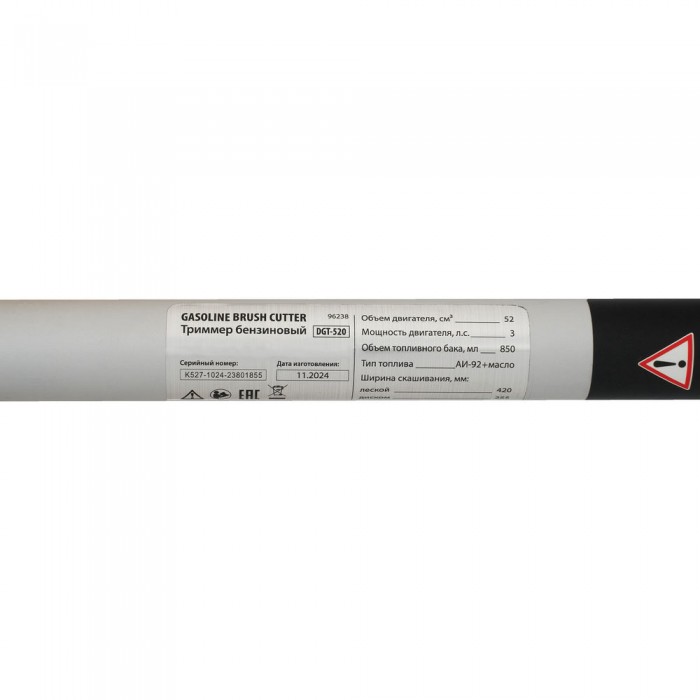 Триммер бензиновый DGT 520, 52 см3, 3 л. с, неразъемная штанга, состоит из 2 частей Denzel (96238)