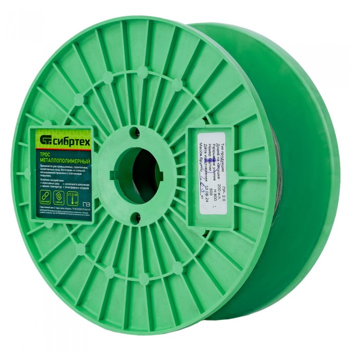 Трос металлополимерный прозрачный ПР-2.0, толщина 2.0 мм, катушка 200 метров Сибртех (47624)