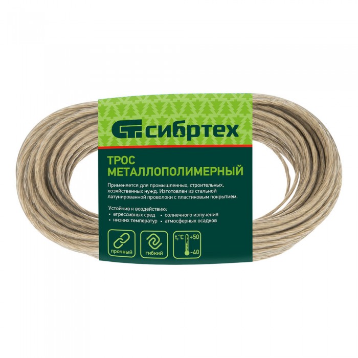 Трос металлополимерный прозрачный ПР-4.0, толщина 4.0 мм, моток 20 метров Сибртех (47631)