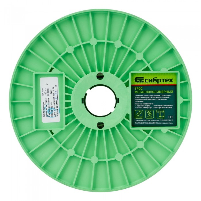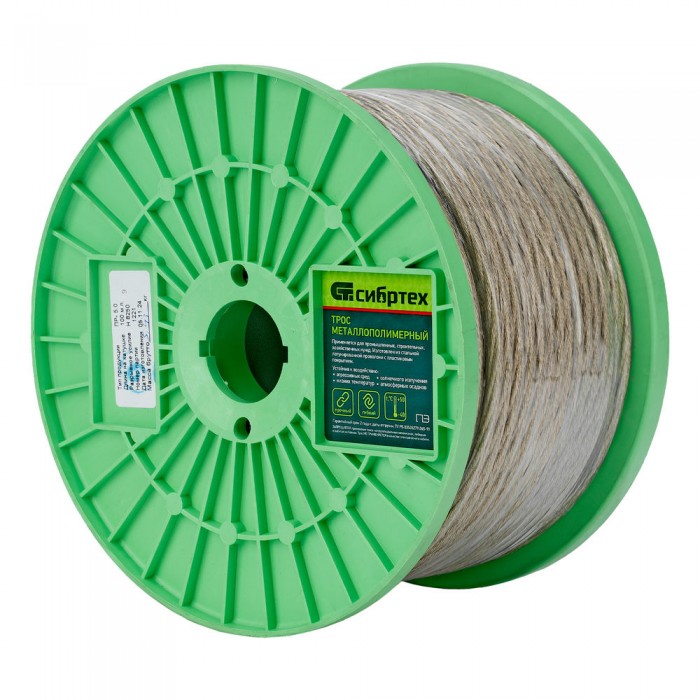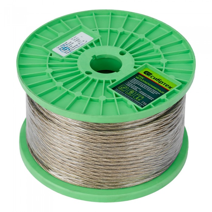 Трос металлополимерный прозрачный ПР-5.0, толщина 4.0 мм, катушка 100 метров Сибртех (47632)