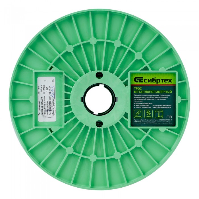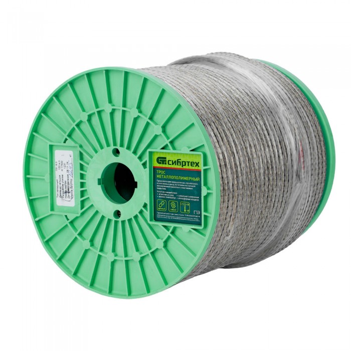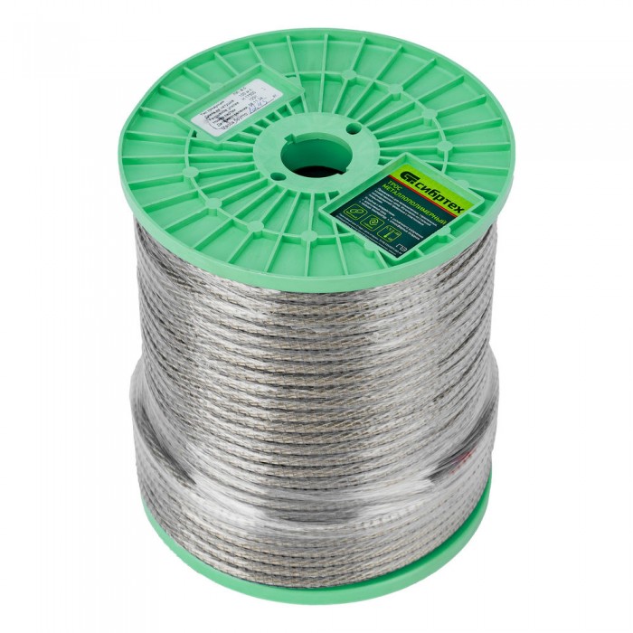 Трос металлополимерный прозрачный ПР-8.0, толщина 8.0 мм, катушка 100 метров Сибртех (47641)