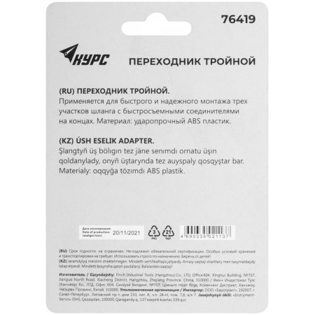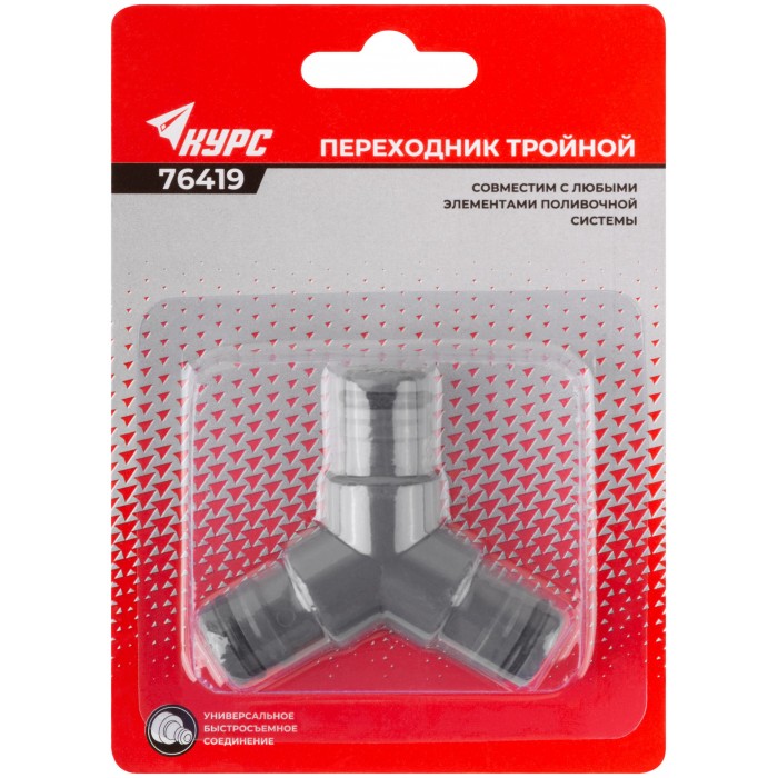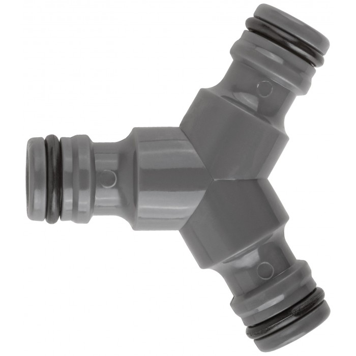 Тройной. Для бысрого и надежного соединения трех участков шланга, имеющих на конце быстросъемные соединители. Материал: ABS пластик. Упаковка блистер.