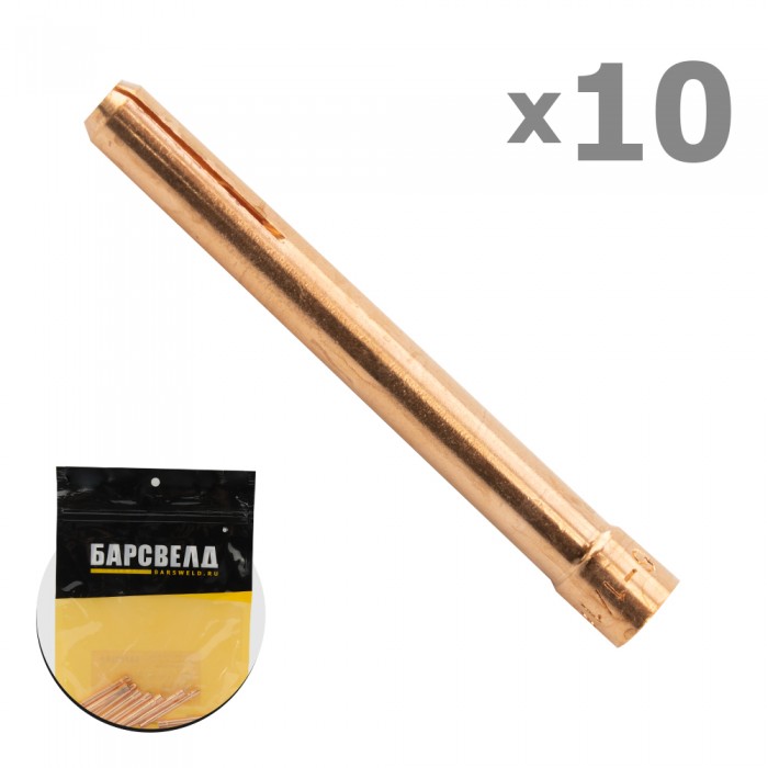 Цанга БАРСВЕЛД ф 1,6 мм используется для фиксации вольфрамового электрода в головке аргонодуговой горелки. Она без проблем устанавливается на горелки серии SR 17, 18, 26 и 400, обеспечивая надежную фиксацию электрода диаметром 1,6 мм.
