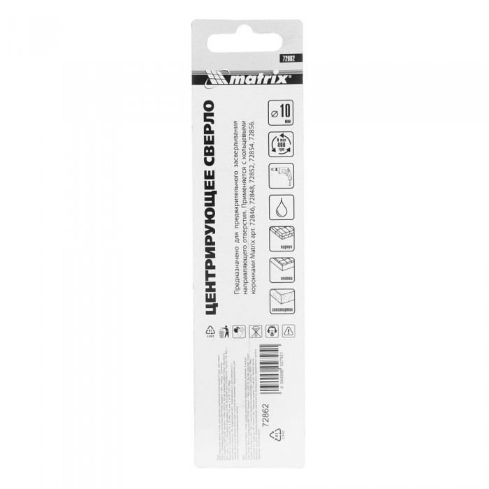 Центрирующее сверло 10 мм, для коронок с карбидным напылением 6-гранный хвостовик Matrix (72862)