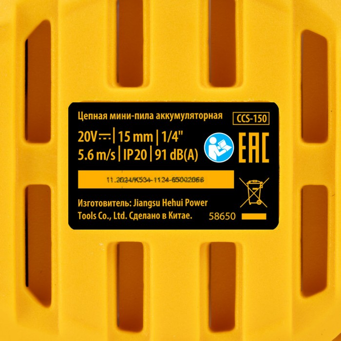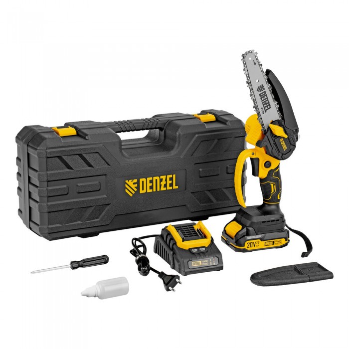 Цепная мини-пила аккумуляторная бесщет., CCS-150, шина 150 мм, Li-Ion, 20 В Denzel (58650)