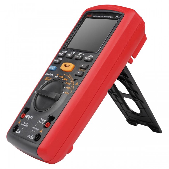 Эта модель относится к четвертой категории электробезопасности CAT IV 600 В, благодаря чему ее можно использовать при проверках достаточно мощного оборудования и систем. Функции самодиагностики и блокировки режима определения сопротивления изоляции, в котором прибор подает на линию напряжение до 1000 В, делают работу более безопасной.