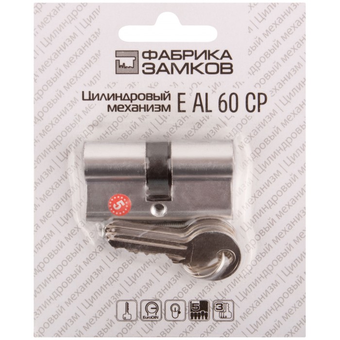 Цилиндровый механизм "Фабрика замков" 60 мм, ключ-ключ, хром (67211)
