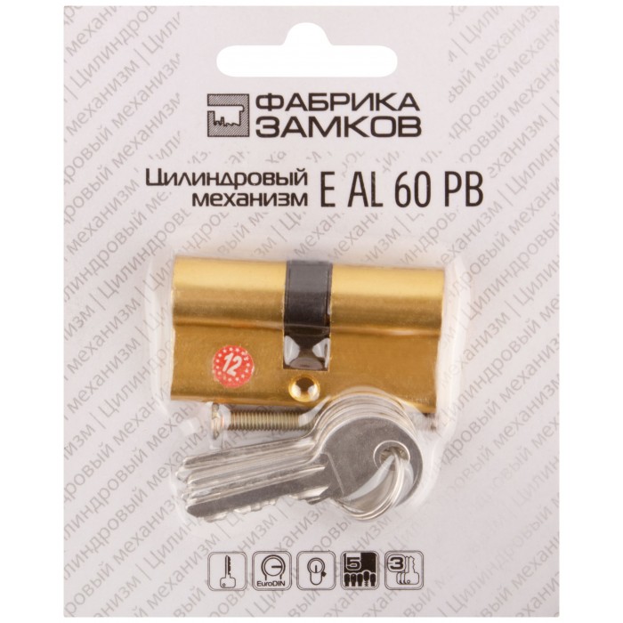 Цилиндровый механизм "Фабрика замков" 60 мм, ключ-ключ, латунь (67212)