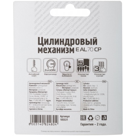 Цилиндровый механизм "Фабрика замков" 70 мм, ключ-ключ, хром (67205)