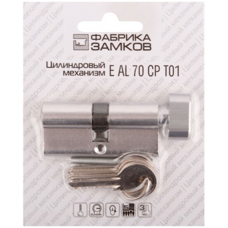 Цилиндровый механизм "Фабрика замков" 70 мм, ключ-завертка, хром (67208)