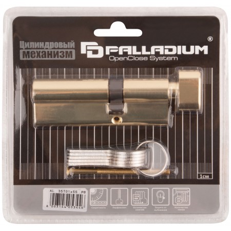 Цилиндровый механизм "PALLADIUM" асимметричный, 90 мм, ключ-завертка, латунь (67248)