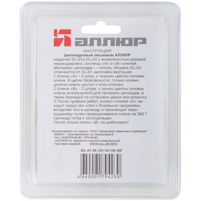 Цилиндровый механизм с перекодировкой ключей ( Аллюр ) 90 мм, ключ-ключ, золото (67258)