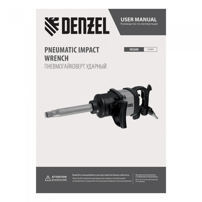 Ударный пневмогайковерт IW2600, 1", 4000 об/мин, 2600 Нм Denzel (57490)