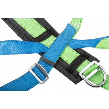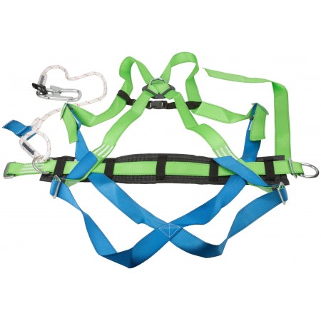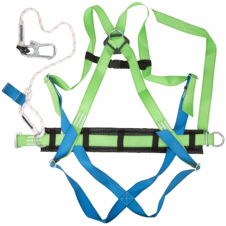 ГОСТ Р ЕН 358-2008. Применяется для защиты человека от падения при выполнении работ на высотных сооружениях. Имеет три точки крепления. Состоит из привязи с наплечными и набедренными лямками (ремень с пряжкой, кушак, два D-кольца на поясе и одно на спине) и стропа