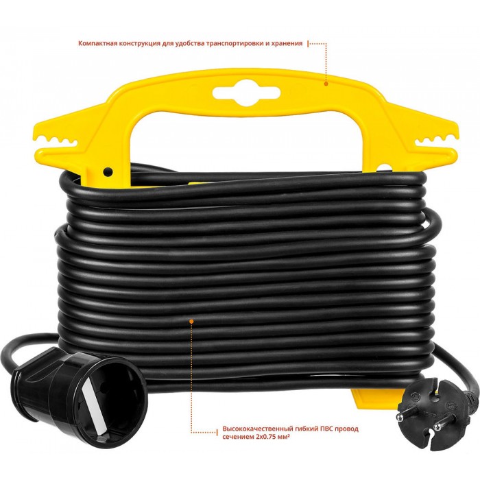 Удлинитель-шнур на рамке предназначен для подключения электрических приборов, которые находится на удалении от основного источника сети. Состоит из провода типа ПВС черного цвета и одной розетки. Облегчит работу на приусадебном участке, стройке или в быту.