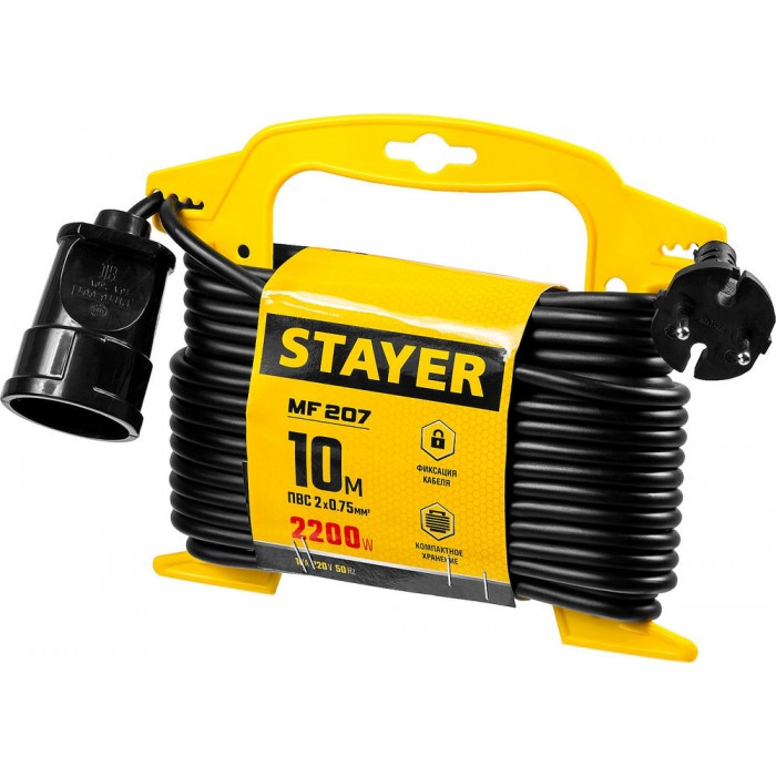 Удлинитель на рамке MF 207 10 м 2200 Вт 1 гнездо ПВС 2х0,75 мм2 STAYER 55014-10_z01
