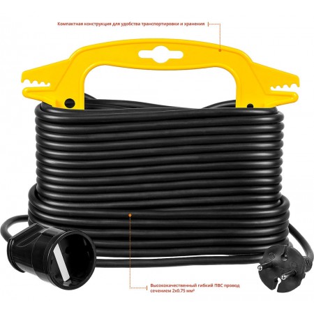 Удлинитель-шнур на рамке предназначен для подключения электрических приборов, которые находится на удалении от основного источника сети. Состоит из провода типа ПВС черного цвета и одной розетки. Облегчит работу на приусадебном участке, стройке или в быту.
