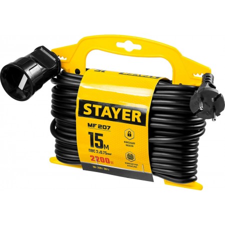Удлинитель на рамке MF 207 15 м 2200 Вт 1 гнездо ПВС 2х0,75 мм2 STAYER 55014-15_z01