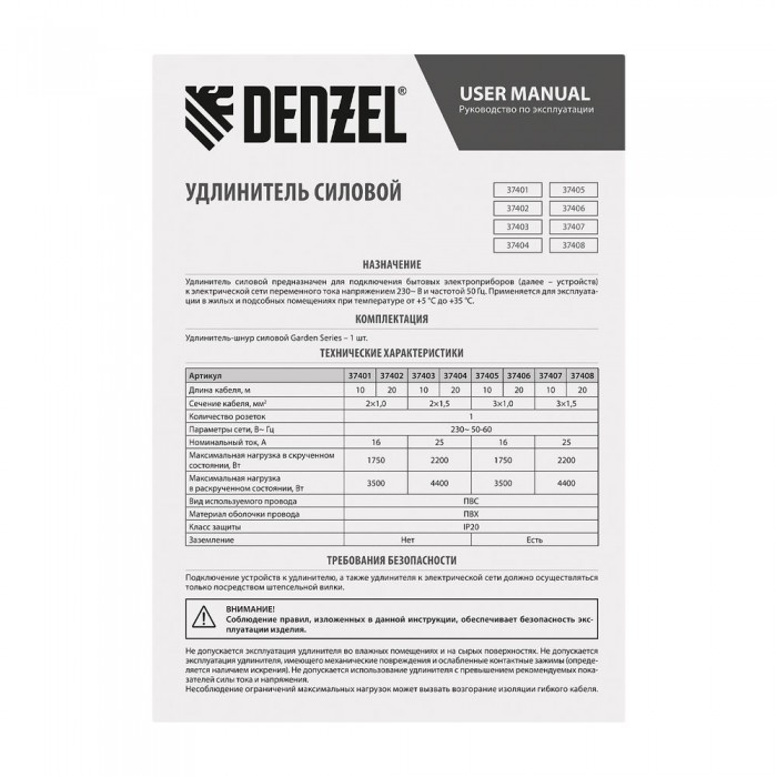 Удлинитель-шнур силовой Garden Series, ПВС, 10м, 1 розетка, 3 x 1 мм, Denzel (37405)