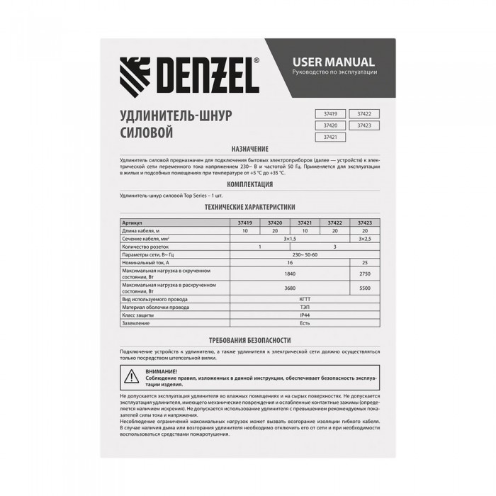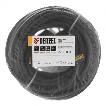 Удлинитель-шнур силовой Top Series, КГТТ, 20м, 1 розетка, 3 x 1,5 мм Denzel (37420)