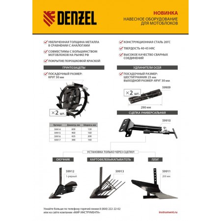 Удлинители осей шест. 23 мм / круг 30 мм, длина 290 мм, комплект 2 шт Denzel (59909)