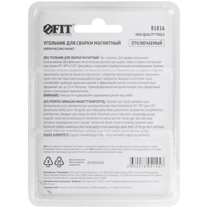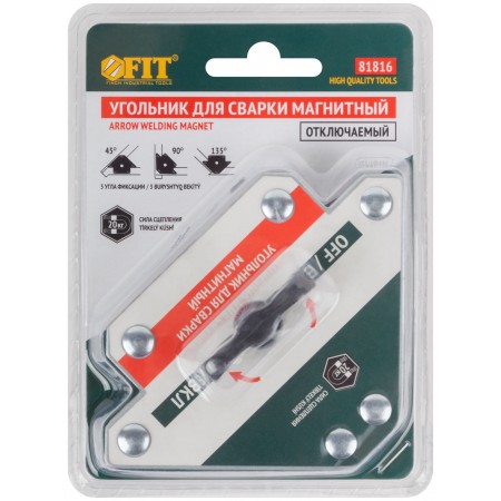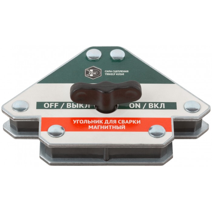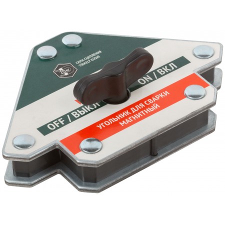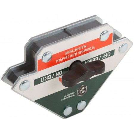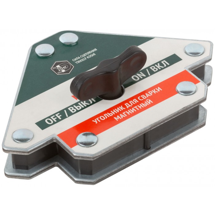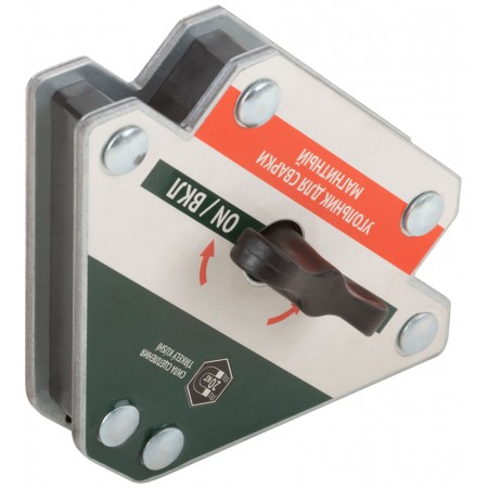 Тип «стрелка». Отключаемый. Для профессионального использования. Для фиксации металлических деталей при сварке, пайке и сборке конструкций под углами 45°, 90° и 135°. Для работы с круглыми и прямоугольными металлическими трубами, полосами, уголками, профилями, листовым металлом и т.д. Переключатель на корпусе позволяет «выключить» магнит во время его крепления к элементам металлоконструкций и «включить» после того, как подготовительные работы будут завершены. Материал: термообработанная инструментальная сталь, ферритовый магнит, пластиковый переключатель. Упаковка: блистер.