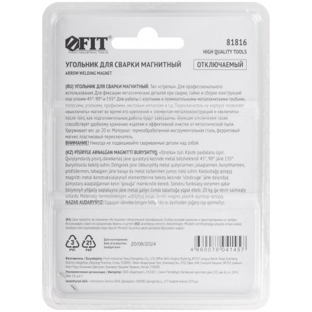Угольник для сварки магнитный отключаемый, тип "стрелка", усилие до 20 кг (81816)
