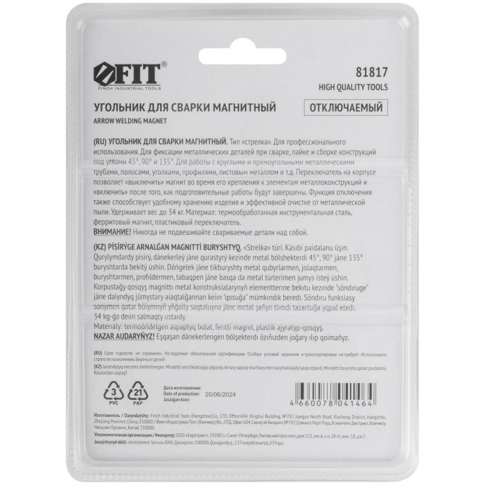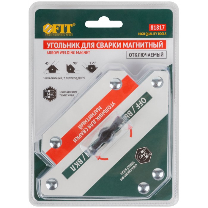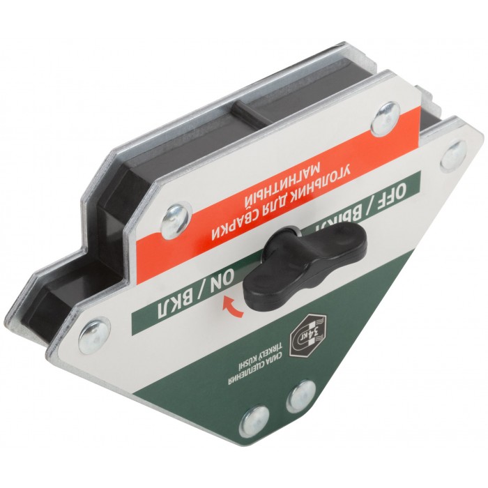 Тип «стрелка». Отключаемый. Для профессионального использования. Для фиксации металлических деталей при сварке, пайке и сборке конструкций под углами 45°, 90° и 135°. Для работы с круглыми и прямоугольными металлическими трубами, полосами, уголками, профилями, листовым металлом и т.д. Переключатель на корпусе позволяет «выключить» магнит во время его крепления к элементам металлоконструкций и «включить» после того, как подготовительные работы будут завершены. Материал: термообработанная инструментальная сталь, ферритовый магнит, пластиковый переключатель. Упаковка: блистер.