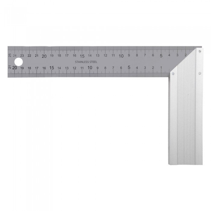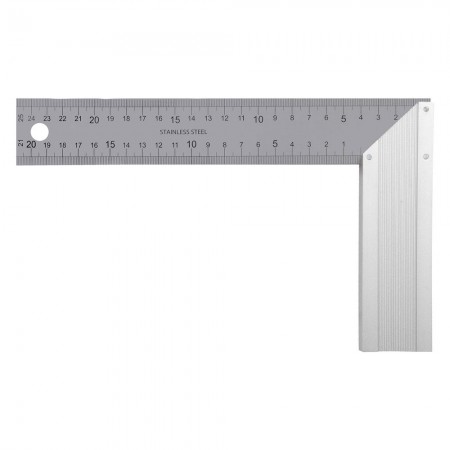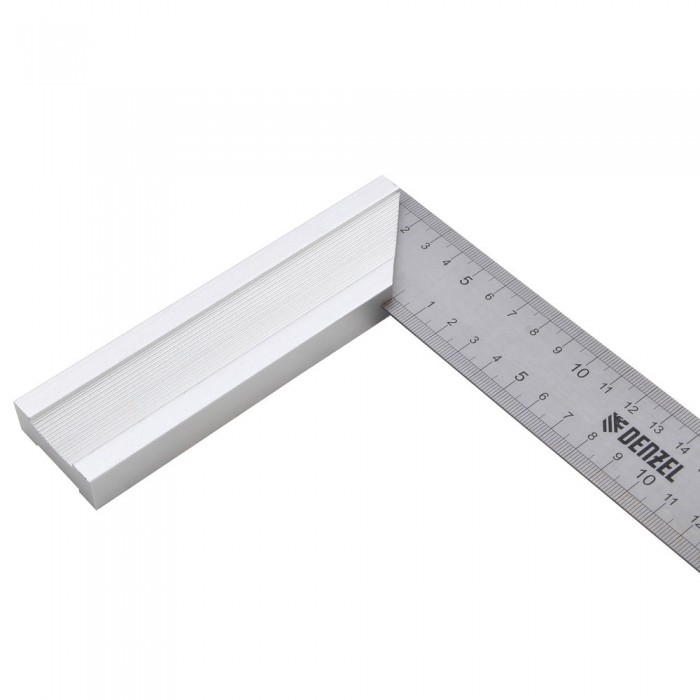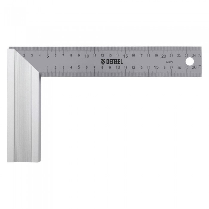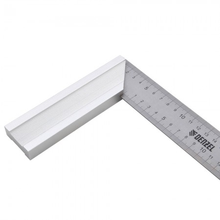Угольник стальной 250 мм, нержавеющая сталь, градуировка, алюминиевое основание Denzel (32396)