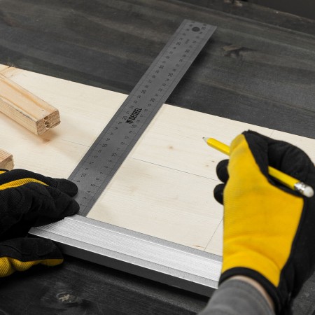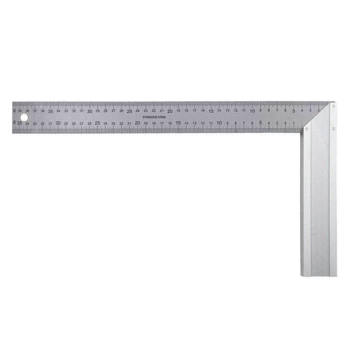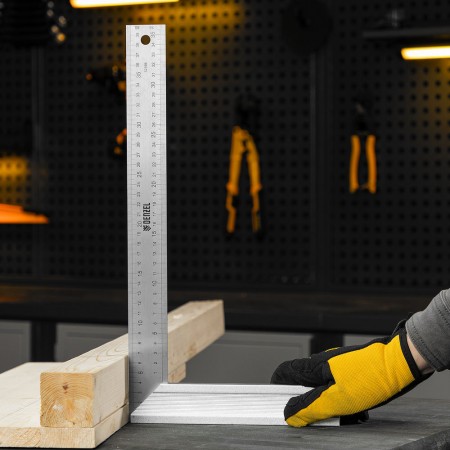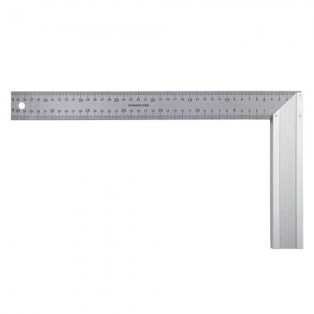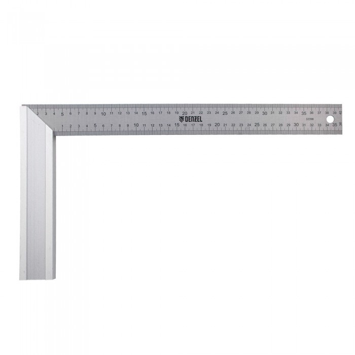 Угольник стальной 400 мм, нержавеющая сталь, градуировка, алюминиевое основание Denzel (32398)