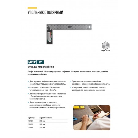 Угольник столярный, рифленая шкала, алюминиевое основание 300 мм (19462)
