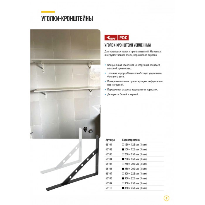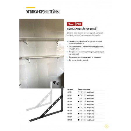 Уголок-кронштейн усиленный белый 250х200 мм (66105)