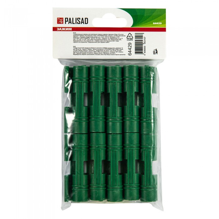 Универсальные зажимы для крепления к каркасу парника D 12 мм, 20 шт в упаковке, зеленые Palisad (64429)