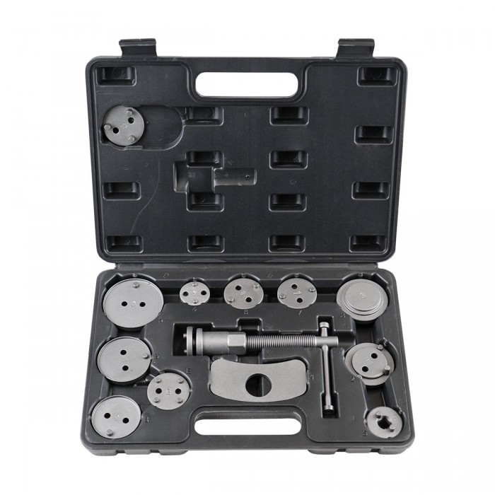 - может применяться как с передними, так и с задними суппортами - содержит Т- образную рукоятку со стандартной правой резьбой - включает 11 переходных пластин-адаптеров для наиболее распространённых марок автомобилей: