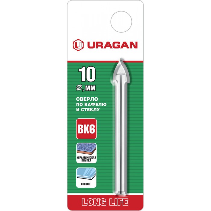 Сверла по кафелю и стеклу URAGAN - надежный и проверенный инструмент высокого качества. Сверла предназначены для сверления отверстий в стекле, керамической и кафельной плитке.