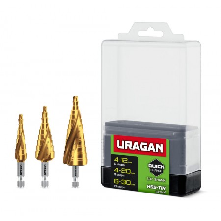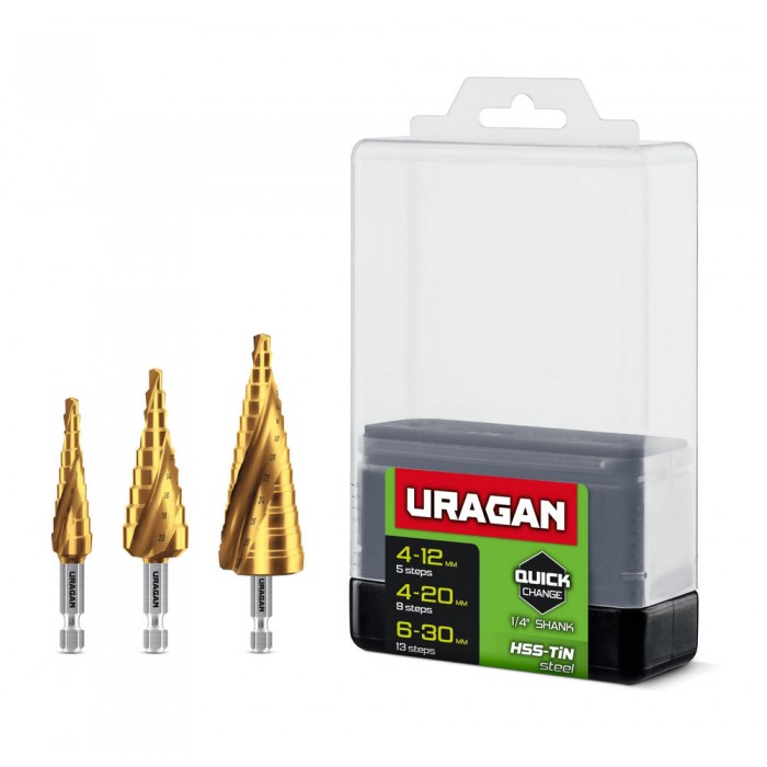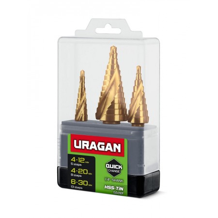 Сверла ступенчатые набор винтовая спираль URAGAN 3 шт 4-30мм 29658-4-30-H3