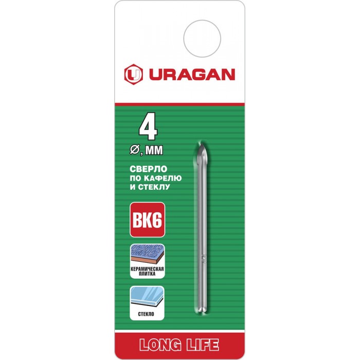 Сверла по кафелю и стеклу URAGAN - надежный и проверенный инструмент высокого качества. Сверла предназначены для сверления отверстий в стекле, керамической и кафельной плитке.