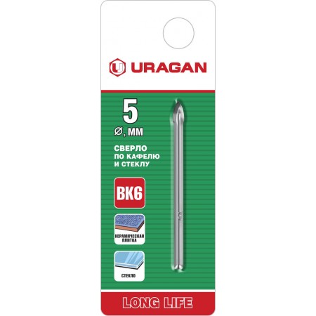 Сверла по кафелю и стеклу URAGAN - надежный и проверенный инструмент высокого качества. Сверла предназначены для сверления отверстий в стекле, керамической и кафельной плитке.
