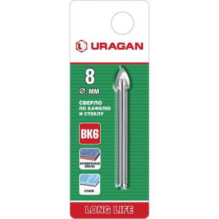 Сверла по кафелю и стеклу URAGAN - надежный и проверенный инструмент высокого качества. Сверла предназначены для сверления отверстий в стекле, керамической и кафельной плитке.