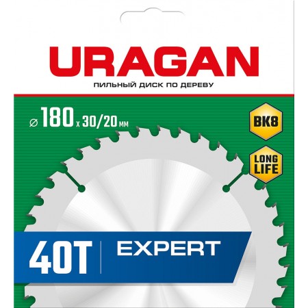 Диск пильный по дереву Expert URAGAN 180х30/20 мм 40Т 36802-180-30-40_z01