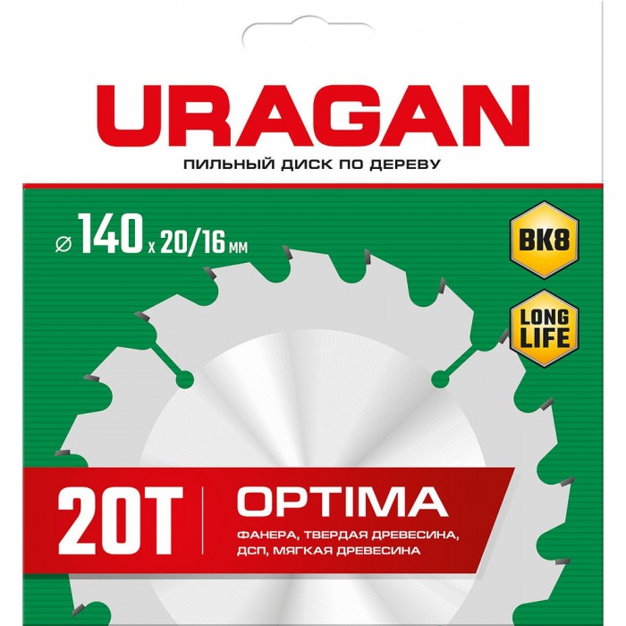 Диск пильный по дереву Optima URAGAN 140х20/16 мм 20Т 36801-140-20-20_z01