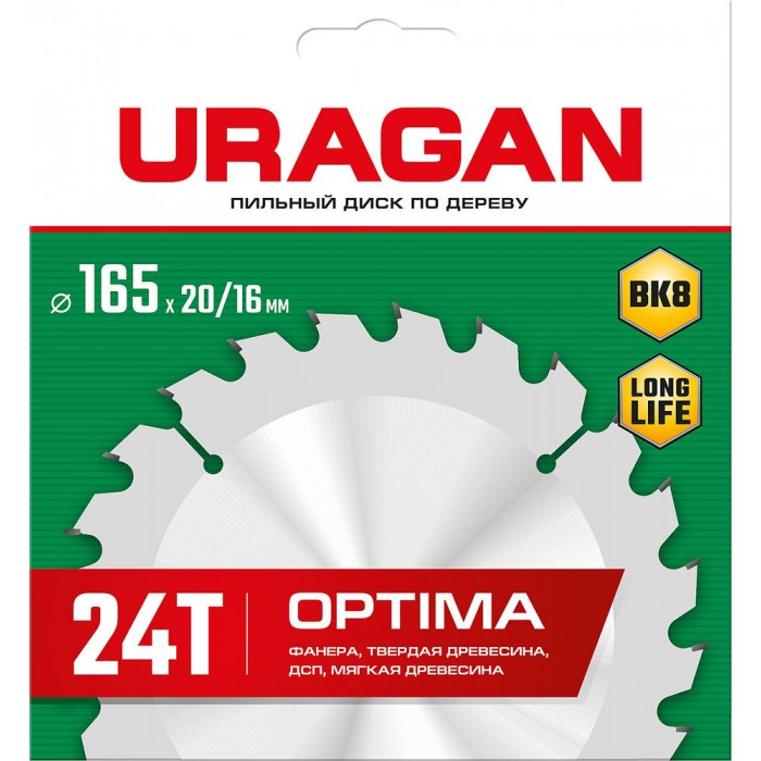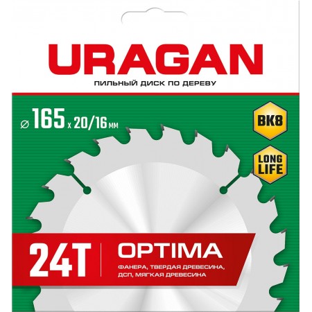 Диск пильный по дереву Optima URAGAN 165х20/16 мм 24Т 36801-165-20-24_z01