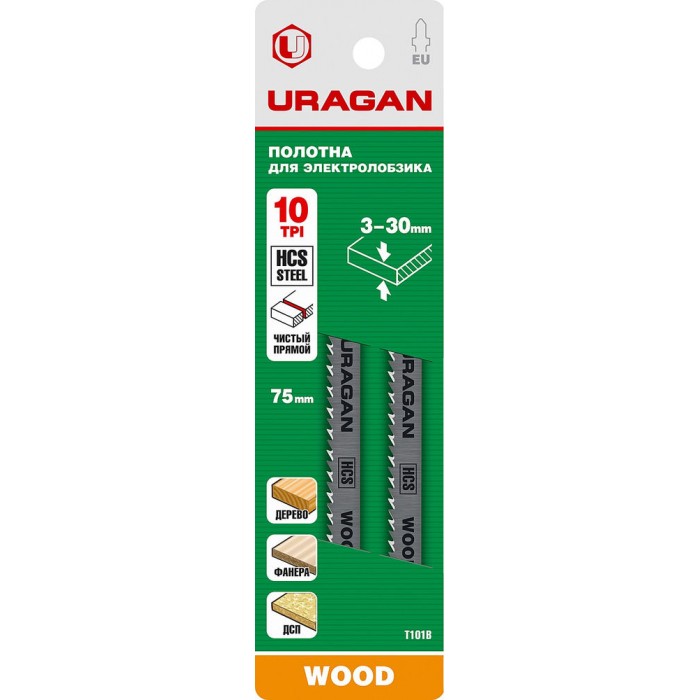 -Размер полотна: 75 x 2,5 mm -Классификация по Bosch: T101B, Полотна URAGAN для электролобзиков имеют увеличенную толщину рабочей части, что даёт повышенную устойчивость к излому, а также обеспечивает улучшенную геометрию и чистоту пропила.