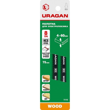 -Размер полотна: 75 x 3 mm -Классификация по Bosch: T111C, Полотна URAGAN обладают увеличенным рабочим ресурсом и имеют повышенную стойкость к излому.
