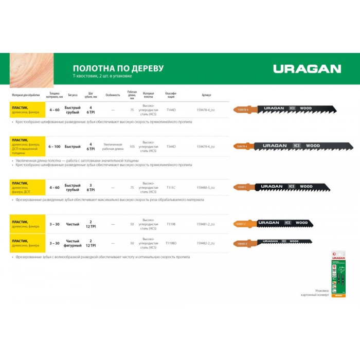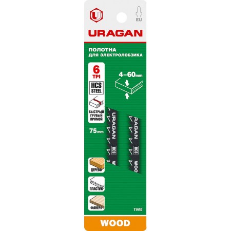 -Размер полотна: 75 x 4 mm -Классификация по Bosch: T144D, Полотна URAGAN обладают увеличенным рабочим ресурсом и имеют повышенную стойкость к излому.
