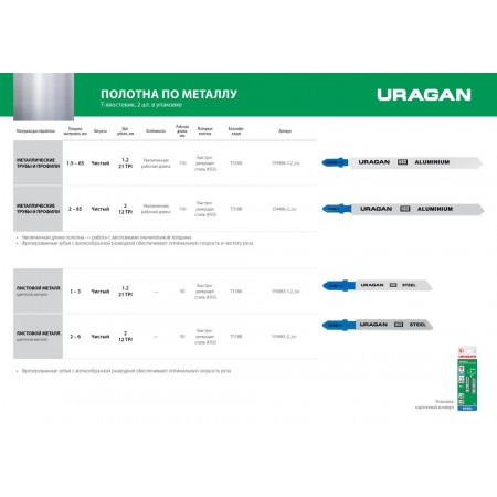 -Размер полотна: 110 x 2 mm -Классификация по Bosch: T318B, Полотна URAGAN обладают увеличенным рабочим ресурсом и имеют повышенную стойкость к излому.