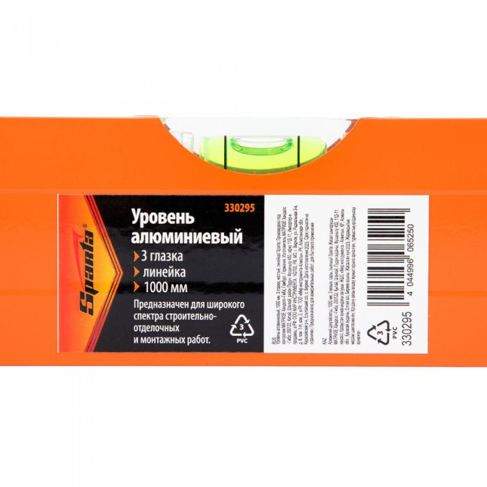 Уровень алюминиевый, 1000 мм, 3 глазка, желтый, линейка Sparta (330295)