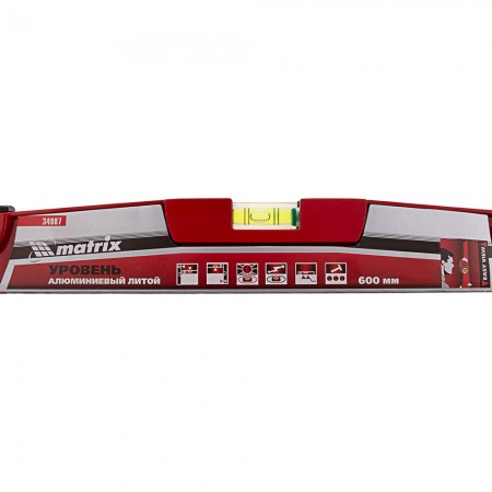 Уровень алюминиевый, 600 мм, литой, 2 глазка (1 фронтальный), ударная площадка Matrix (34907)