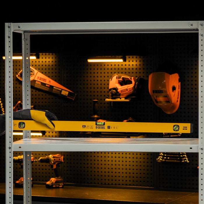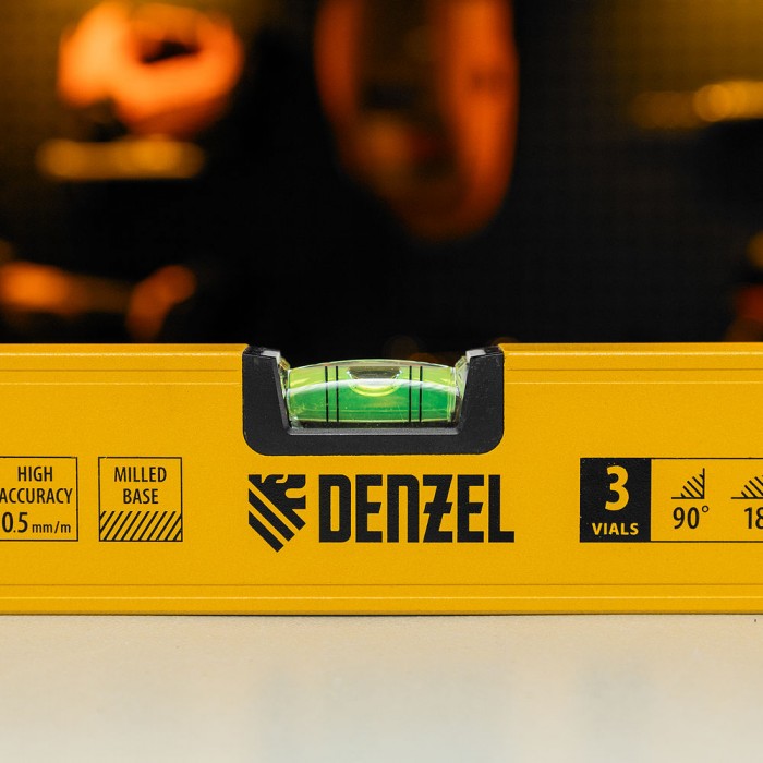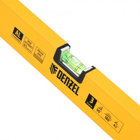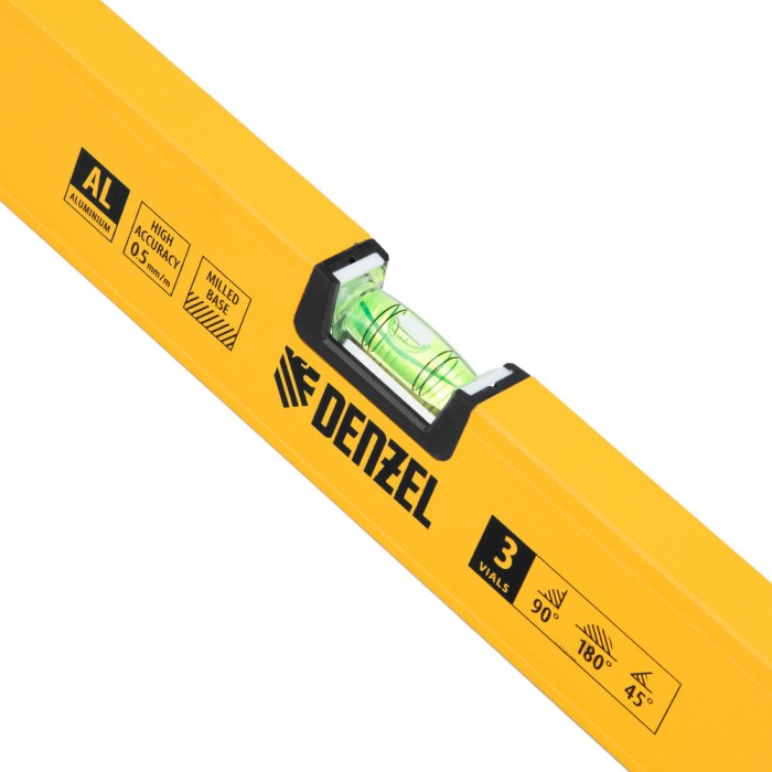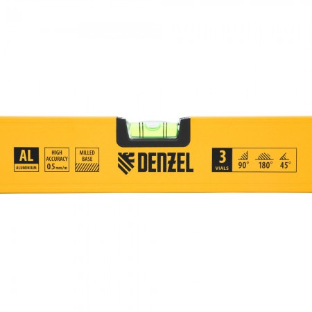 Уровень алюминиевый, магнит, фрезерованный, 3 глазка (1 зеркал.) 0,5 мм/м, 1000 мм Denzel (33693)